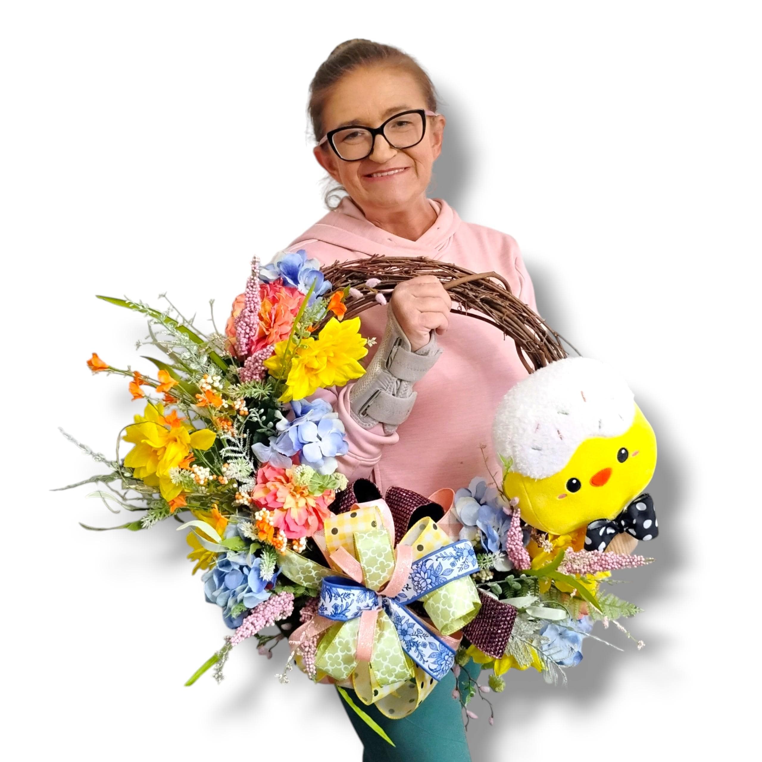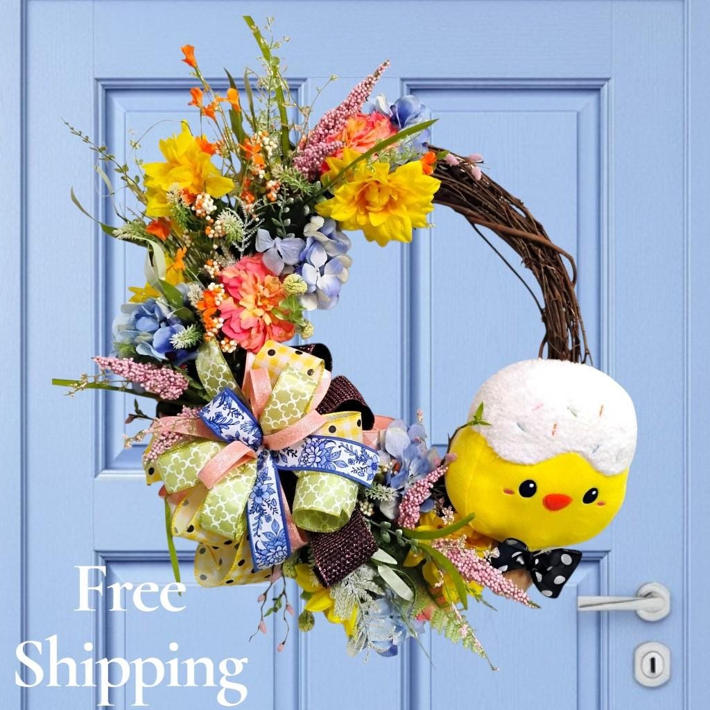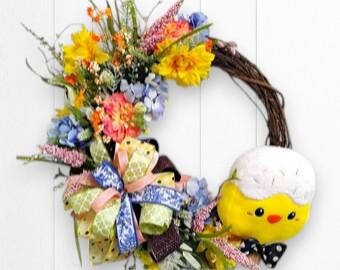 Bright, cheerful, and full of spring charm—this Easter wreath is designed to bring a fresh and welcoming touch to your front door. Featuring soft pastel tones, seasonal florals, and a natural grapevine base, this wreath creates a warm and inviting look perfect for spring.